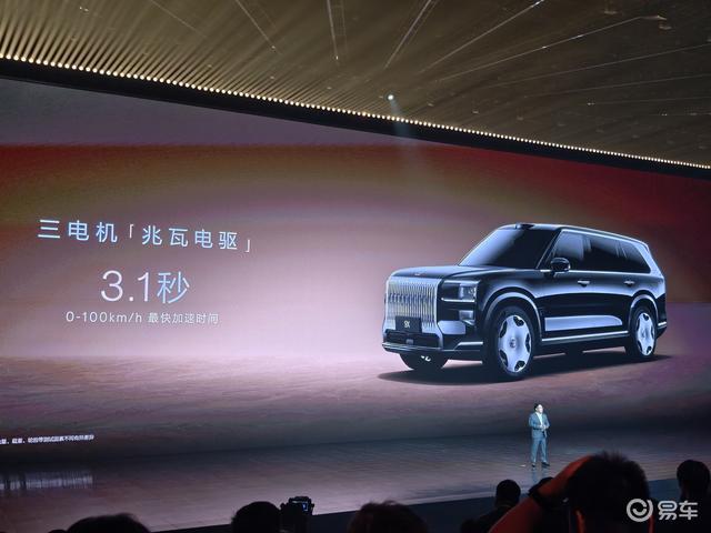 极氪9X采用全栈900伏混动高压架构,搭载全球首套三电机兆瓦级混动电驱系统,综合输出超1400匹马力,零百加速全系3秒级,最快只需3.1秒,性能十分强大。