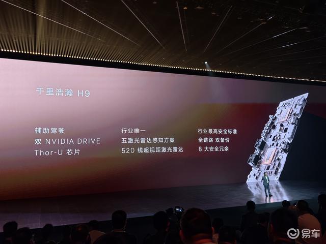 智能驾驶辅助方面,极氪9X提供千里浩瀚H7方案和面向L3时代的千里浩瀚H9辅助驾驶方案,其中千里浩瀚H7搭载Thor-U芯片,算力700TOPS,千里浩瀚H9则搭载了双Thor-U芯片,算力1400 TOPS,结合43个感知单元,拥有更高的安全冗余。