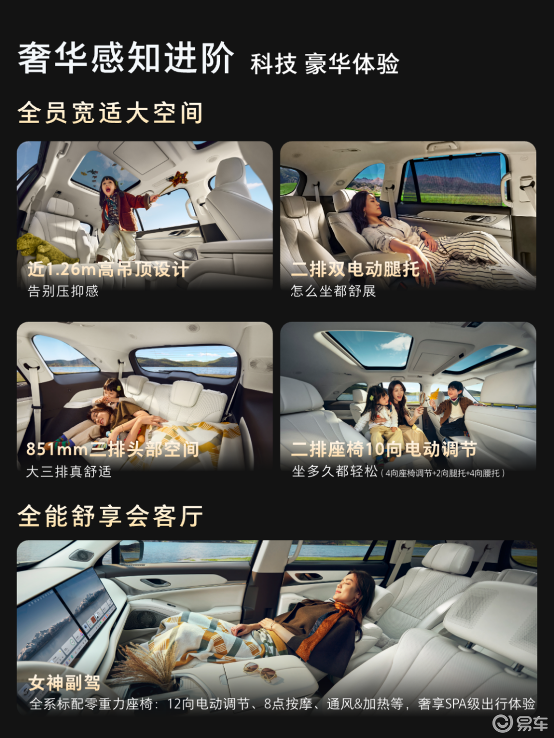 内饰方面,魏牌蓝山智能进阶版也基本延续现款的设计。新车配备15.6英寸中控屏和15.6英寸副驾娱乐屏,还配备全液晶仪表以及29英寸Coffee SR-HUD抬头显示系统。方向盘为双辐式设计,应用怀挡式换挡机构,副仪表台配备手机无线充电面板,中央扶手箱内为独立压缩机车载冰箱,整体兼顾了实用性与智能属性。