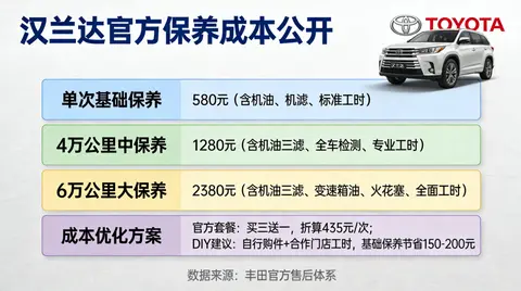 丰田汉兰达官方保养指南:官方保养项目 + 真实花费