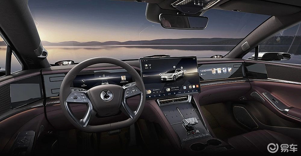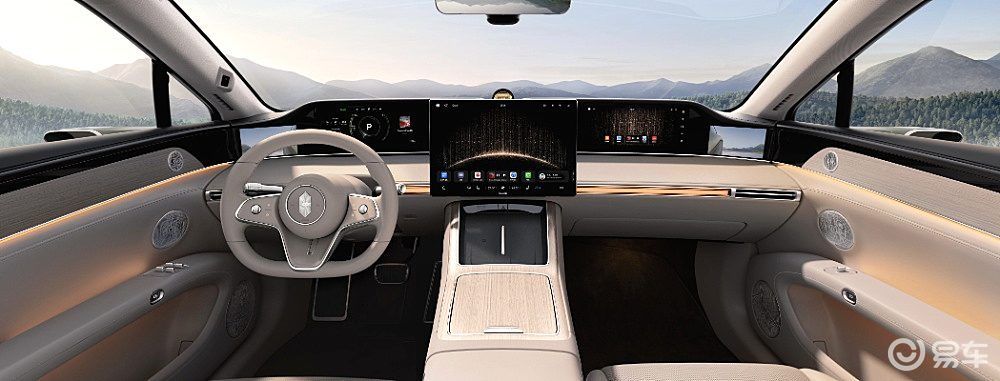 内饰整体以豪华质感为核心,全车采用Nappa 真皮包裹,搭配全球臻选的天然实木饰条与麂皮车顶,触手可及之处均体现细腻质感。座椅采用舒云座椅设计,标配加热、通风和按摩功能,并支持多向电动调节,副驾更配备零重力座椅,提供极致舒适的乘坐体验,1680 万全色域流水氛围灯与星环散射体声学装饰相结合,配合整车静谧设计,营造出沉浸式的豪华座舱氛围。