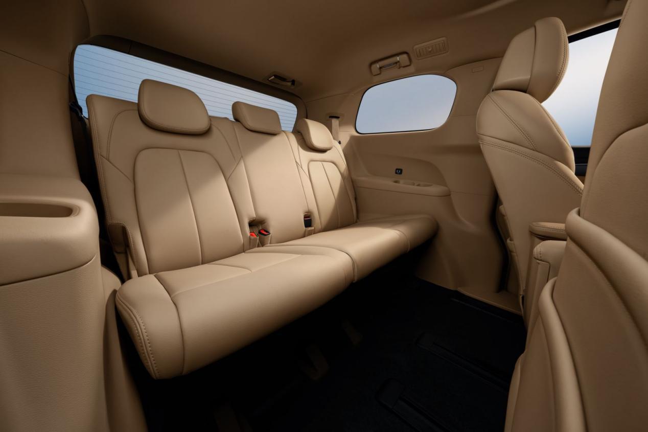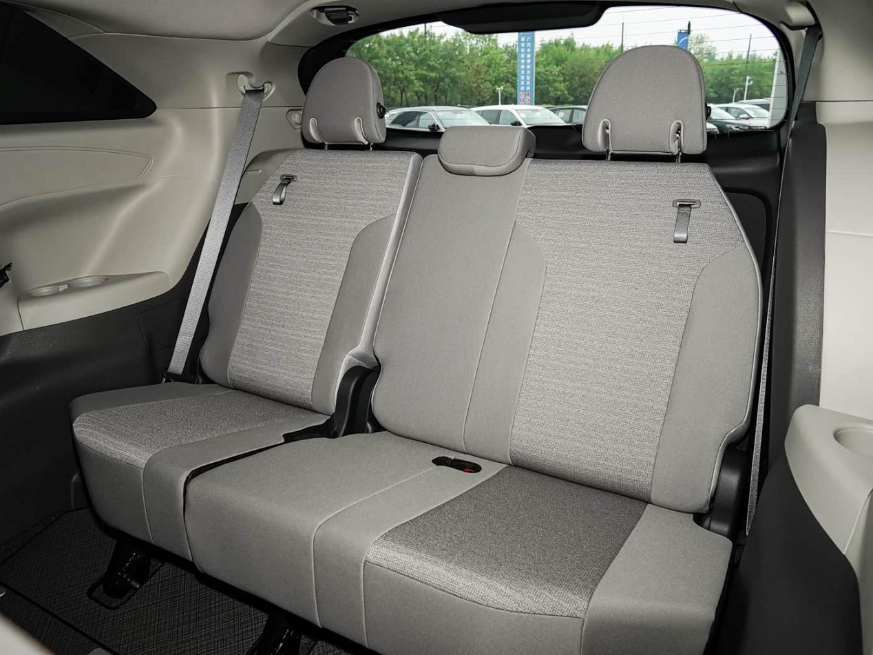 赛那的第二排乘坐感受还是令人满意的,但是第三排能明显感觉到头部空间不足,由于坐垫设计的有些短,腿部会处于悬空的状态,长时间乘坐会比较疲劳。而且第三排座椅高度较低,倾斜更大,两侧侧窗面积位置又偏高,导致第三排环境会有些闭塞,还有很大的改进空间。