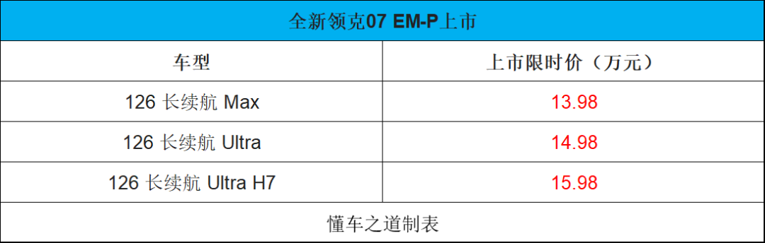 全新领克07 EM-P于9月25日上市,推出3款车型,限时售价区间13.98-15.98万元。作为年款车型,新车针对配置有所调整升级,并增加了激光雷达,在智能辅助驾驶方面得到很好的提升。动力方面,新车搭载由1.5T发动机+电机组成的插电式混合动力系统,发动机最大功率163马力(120千瓦)。