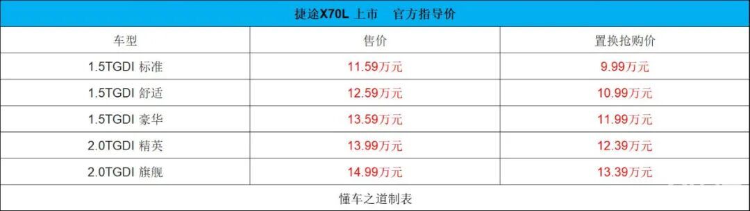 9月25日,捷途X70L正式上市,售价11.59-14.99万元,置换抢购价9.99-13.39万元,还享流量、超长质保、金融贴息等多重权益。新车定位为中型SUV,采用最新家族设计语言,搭载15.6英寸中控屏以及骁龙8155芯片。动力方面搭载1.5T发动机和2.0T发动机。