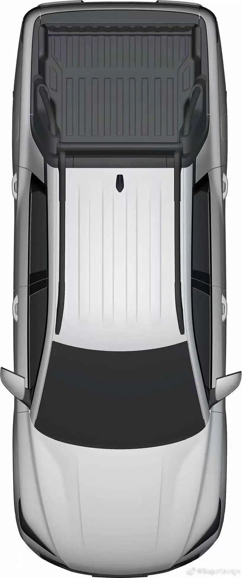新皮卡将采用与其巴西竞争对手相同的一体承载式车身结构。整车保留双排五座布局,车顶配备行李架,货箱轮拱处预留较大空间以适应重载。后保险杠集成拖车方口,支持一定的牵引功能,预计在 2.0T左右。车身长度预计约5.3米,轴距接近3.2米,货箱容积或达1200L,略小于SHARK,但优于同级竞品如菲亚特Toro。