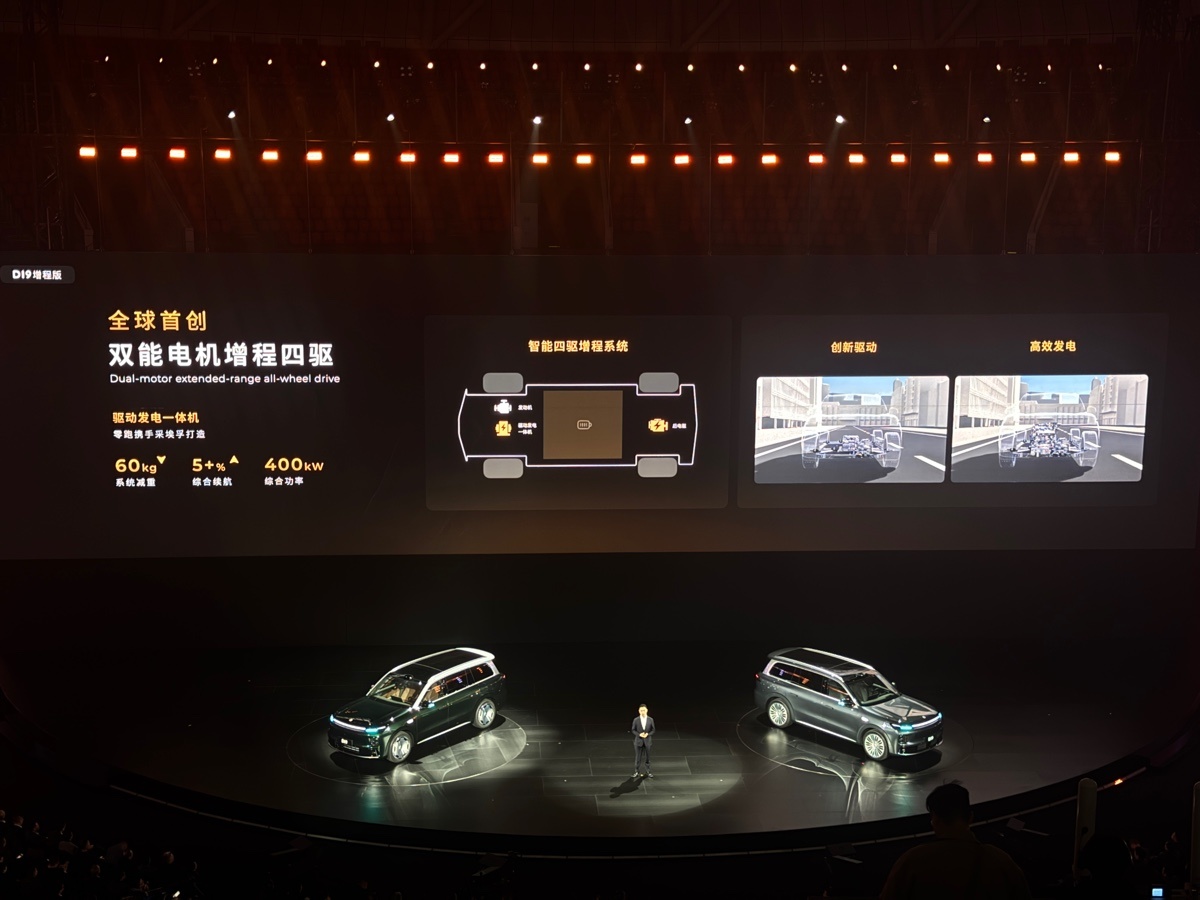 动力方面,新车将推出纯电及增程两种版本,纯电版采用前后三电机四驱,系统功率高达540kW,轮端扭矩8770N·m,百公里加速跻身3秒俱乐部;增程版功率达400kW,可实现4秒级零百加速。