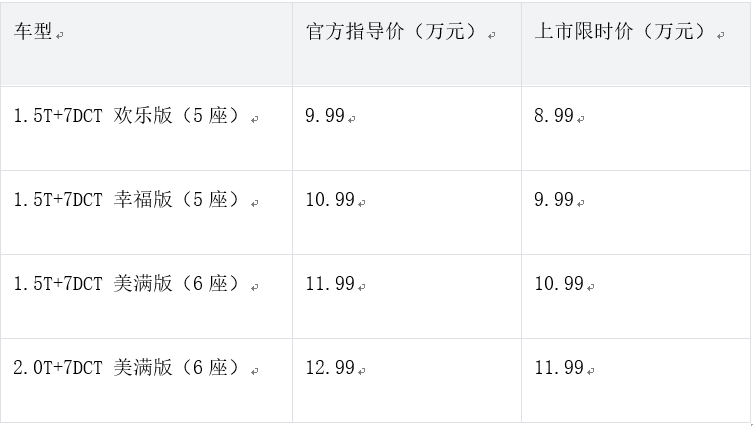 第三代豪越L车型售价表