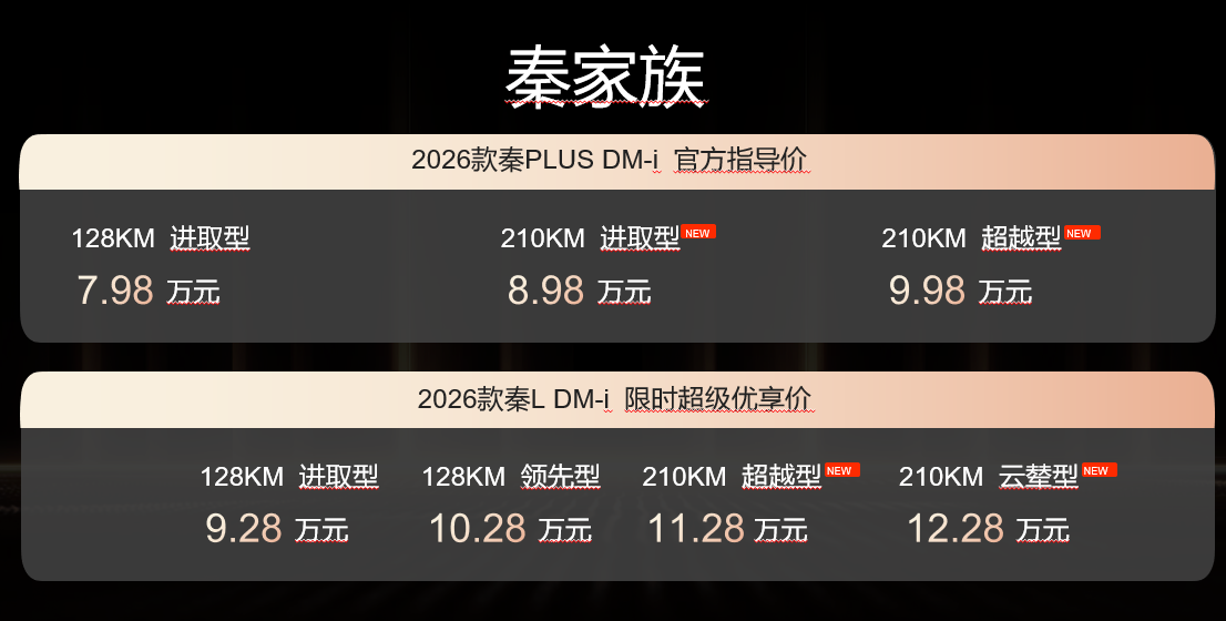 发布会的最高潮出现在价格与权益公布时刻。比亚迪王朝网陕甘宁战区大区经理李正伟先生正式公布了2026款秦、宋长续航版的指导售价及限时尊享权益: