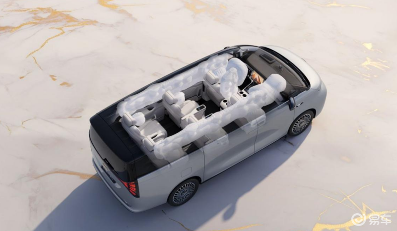 安全方面,银河V900采用“星甲车身”设计,高强度钢占比76.6%,局部采用2000MPa军工级钢,加上133mm超厚十宫格铝制门槛梁、同级最长447mm铝合金吸能盒、全球最多11处环抱气囊、同级最大224L侧气帘等,堪称一座移动的安全堡垒。