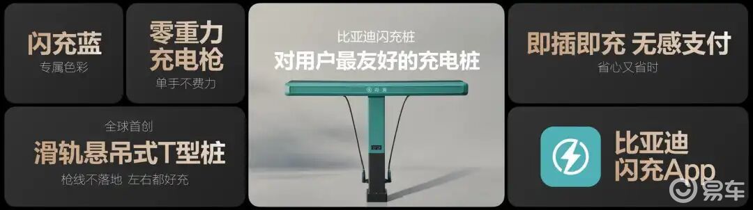 除了电池,充电桩的体验也值得一说。传统的充电枪又重又脏,线缆拖在地上。比亚迪搞了个“滑轨悬吊式T型桩”,让枪和线悬空,还能左右滑动。目的是让女士也能轻松单手操作,并且保持干净。另外就是“即插即充,无感支付”,第一次绑定后,插上枪就开始充电,充完自动扣费走人。这些细节,都是在把“充电”从一个需要费点劲的“任务”,向更无感、更便捷的“过程”去转变。技术解决的是“能不能”的问题,而这些设计解决的是“好不好用、愿不愿用”的问题。