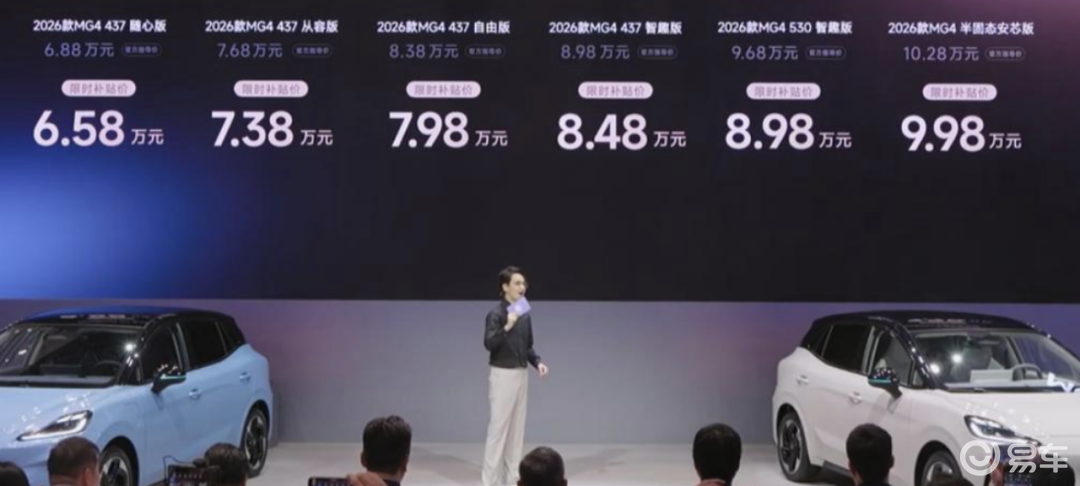 2026款MG4限时补贴6.58万起,刷新A级纯电性价比