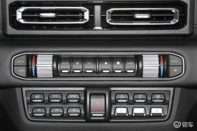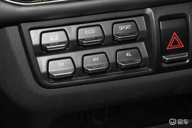 与发动机匹配的是采埃孚8AT变速箱和博格华纳分动箱,这套传动组合在可靠性和匹配成熟度方面具备较高认知基础。车辆支持2H、4H与4L三种驱动模式,其中4L模式下扭矩可放大至2.5倍,用于低速脱困和高阻力路况。整个四驱系统以机械结构为基础,逻辑清晰,反馈直接,更利于驾驶者在复杂地形中进行预判和控制。
