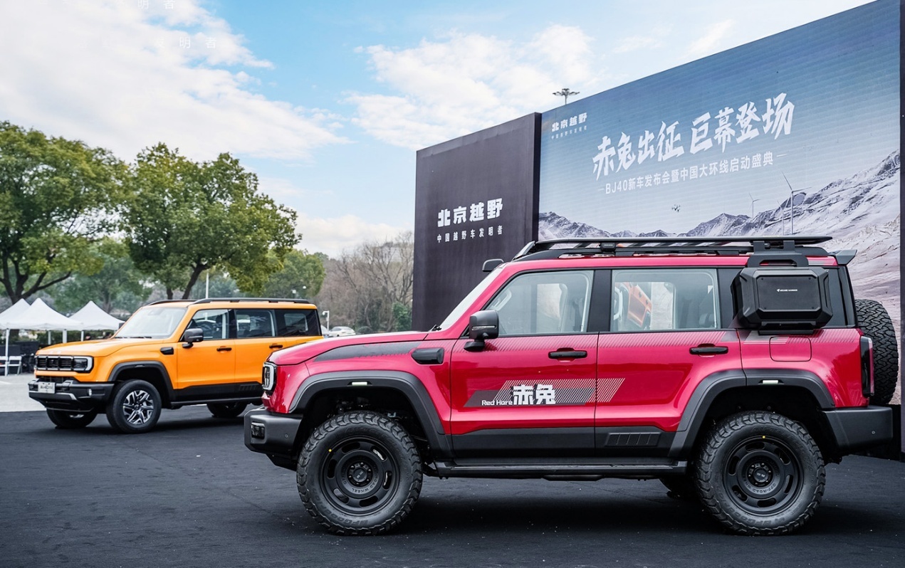 “好马配英雄”,此言在BJ40增程赤兔标准版上体现得尤为真切。官方指导价27.98万元,它绝非简单意义上的新增车型,而是北京越野对用户个性化、合规化改装需求的深度回应。正如北京越野董事长王昊所言,许多改装爱好者苦于年检反复、费时耗财,而赤兔标准版正是为此而生——原厂即带高颜值改装,一步到位,合法上路。其命名取自“赤兔”,车身那抹炽烈如血的“赤兔红”,恰似汗血宝马驰骋时肌肉透出的力量感。外观上,专属拉花、扩宽轮眉、动感尾翼、铝合金爬梯、侧挂包与固定踏板等装备悉数到位,尤其是模块化一体式前后杠,兼顾轻量化、高防护与美学设计。