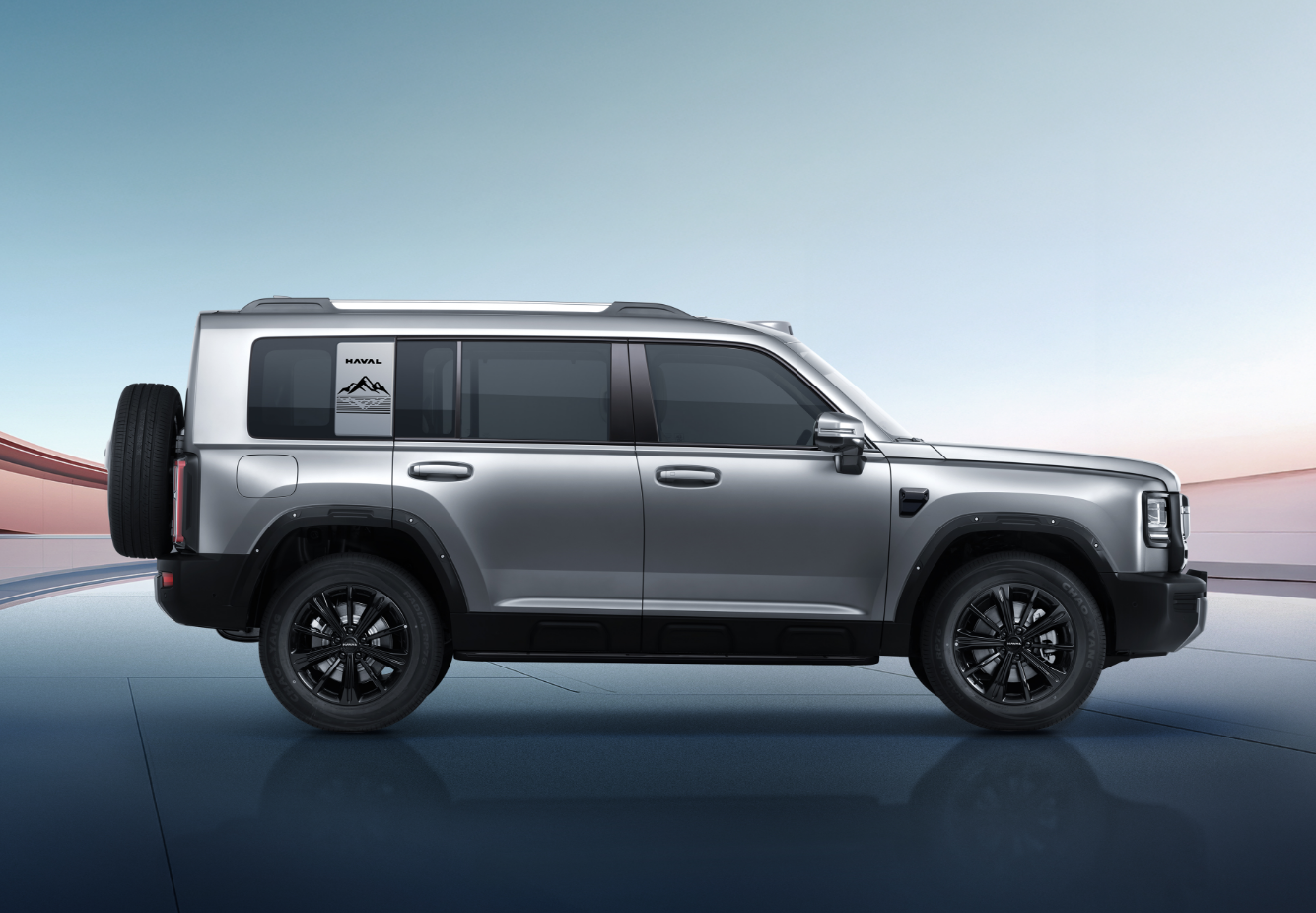 车身侧面的设计则在细节处做足了专属化与实用性考量,官图中可见新车侧窗采用熏黑处理,后侧窗区域加装了带有“HAVAL”标识与山形图案的专属装饰贴花,成为侧面视觉的点睛之笔,同时C/D柱之间加入封闭式面板,让车身侧面线条更简洁流畅;黑色防刮材质包裹的轮拱与侧裙,强化了越野属性,也能应对日常用车的剐蹭;车顶配备的行李架,既兼顾了户外出行的装载实用性,又进一步拉高了车身视觉高度,而车顶激光雷达与侧视摄像头的布局,并未破坏侧面的整体协调性,让智能化配置与外观设计做到了融合。此外,从官图信息来看,新车还可选装侧踏板,进一步提升上下车的便利性。