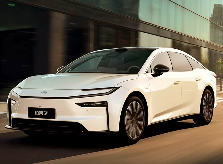 广汽丰田铂智7是由丰田中国团队主导研发的中大型轿车,新车将搭载鸿蒙座舱和Momenta R6高阶辅助驾驶系统,主攻20万级市场。铂智7采用与铂智3X统一的家族式设计风格,新车长宽高分别为5130/1965/1506mm,轴距为3020mm。内饰搭载华为鸿蒙座舱,配备大尺寸中控屏,主驾的仪表屏也可显示多种车辆信息,新车还配备有人脸识别、抬头显示、零重力座椅、23扬声器等。动力方面,新车搭载华为Drive One电驱,最大功率207千瓦,采用中航新航磷酸铁锂电池,提供88.13kWh、71.35kWh两种电池组,CLTC续航里程分别为600km、68km、700km以及710km。